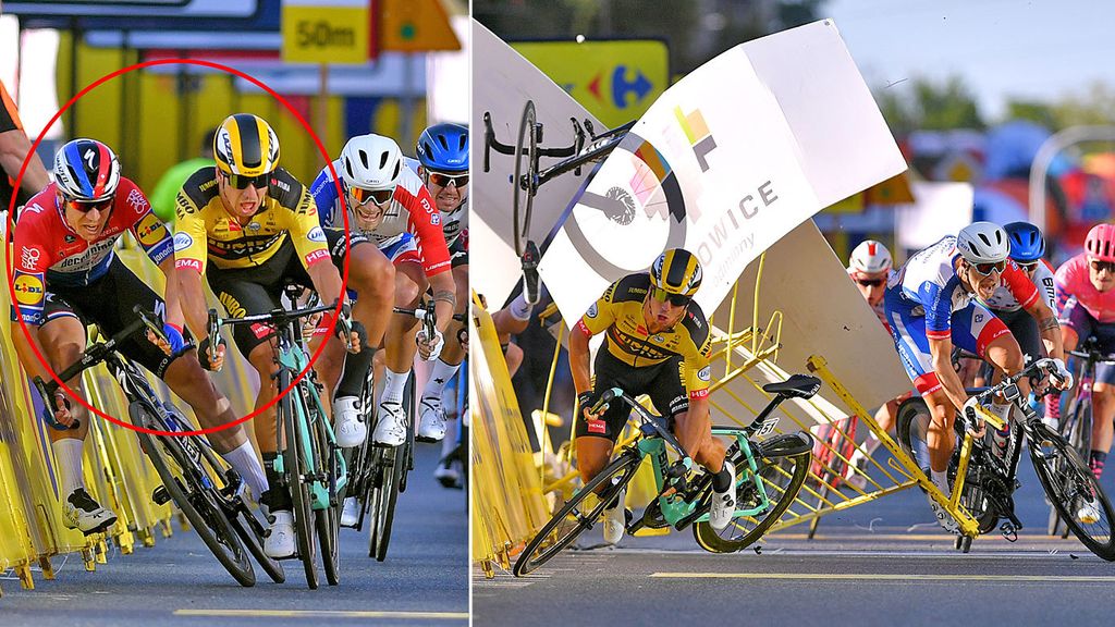 In anger at dylan groenewegen, who is responsible for this with his ruthless driving style.